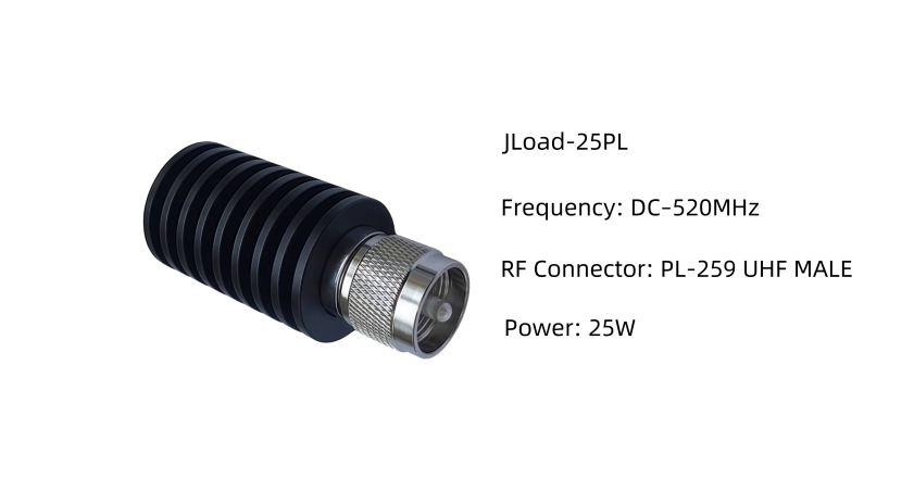 - JLOAD-25PL — features a PL-259 (UHF Male) connector, supporting DC–520 MHz.