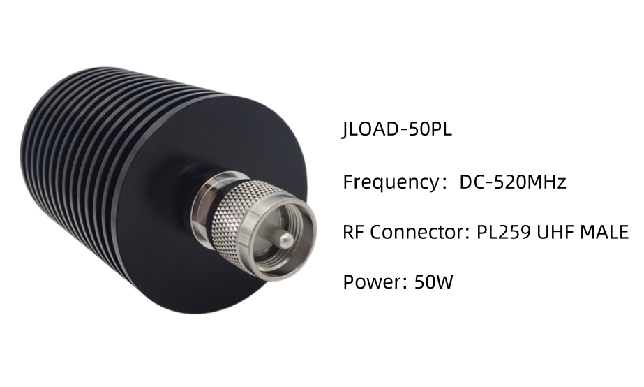 - JLOAD-50PL — features a PL-259 (UHF Male) connector, supporting DC–520 MHz.